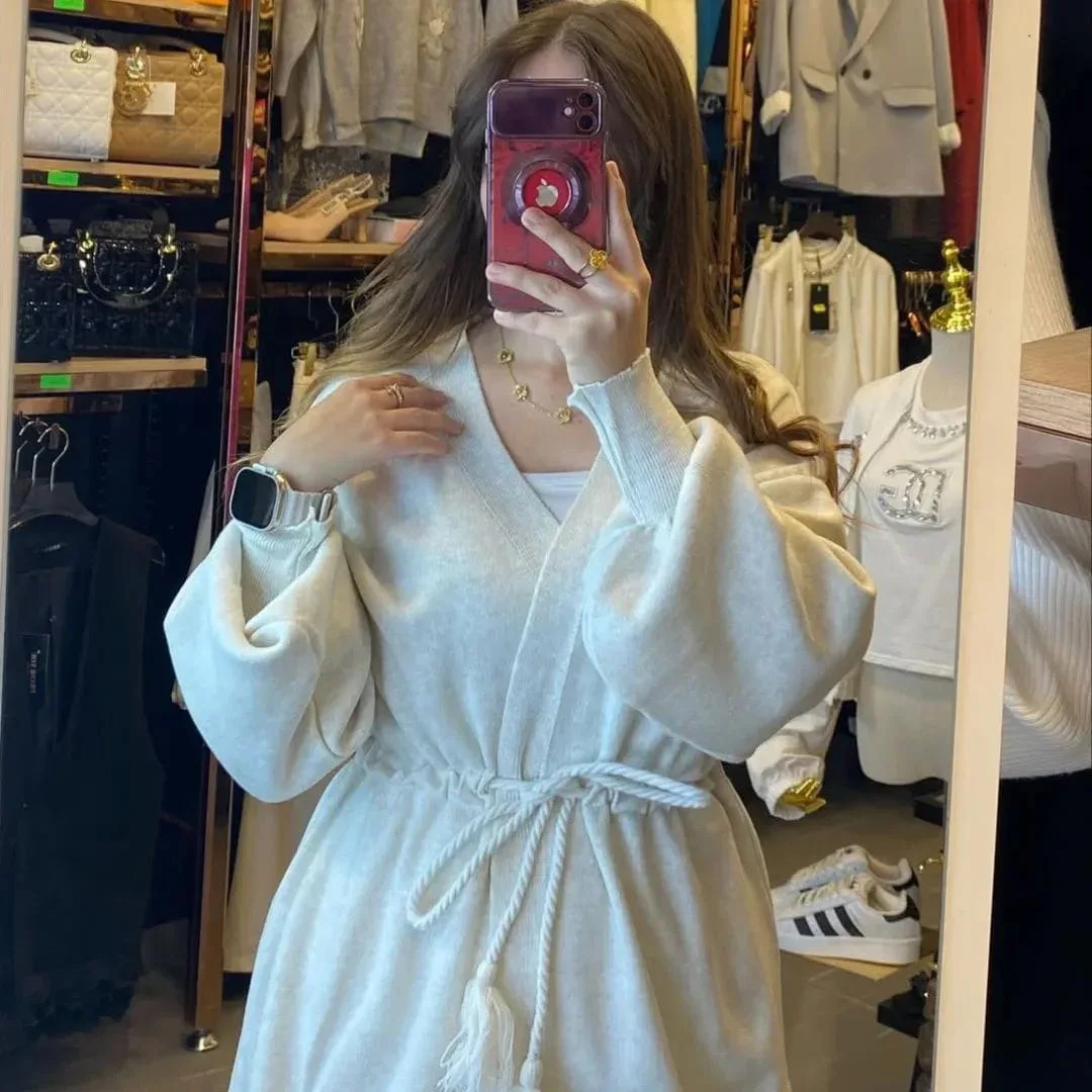 تصميم عملي وذكي: بقصّة عصرية ومريحة، تقدري تلبسيه في الدار وتستمتعي بوقتك، أو تخرجي بيه مع صندالة أنيقة أو سبرديلة وتكوني مستعدة لأي مناسبة.